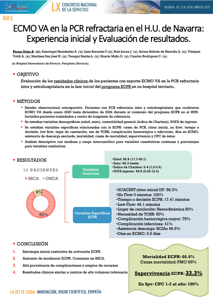 001. ECMO VA en Parada Cardiorespiratoria Refractaria en el H.U. Navarra: experiencia inicial y evaluación de resultados