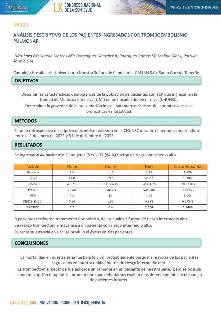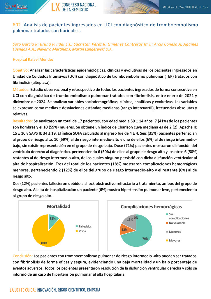 602. Análisis de pacientes ingresados en UCI con diagnóstico de tromboembolismo pulmonar tratados con fibrinólisis