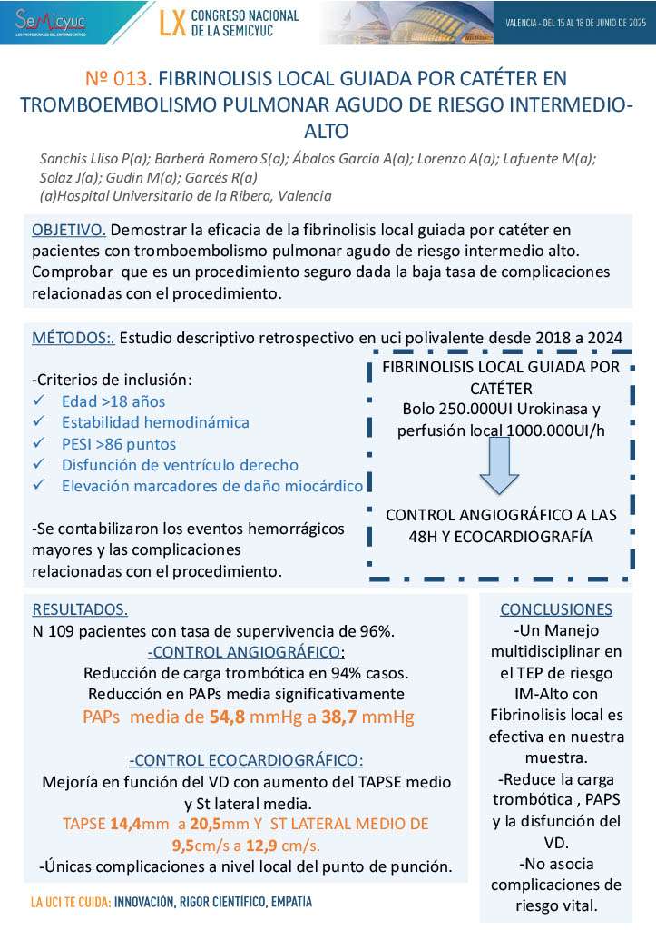 013. Fibrinólisis local guiada por catéter en tromboembolismo pulmonar agudo de riesgo intermedio-alto
