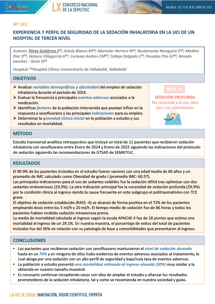 619. Uso de sevoflurano en la sedación de pacientes críticos en la unidad de cuidados intensivos
