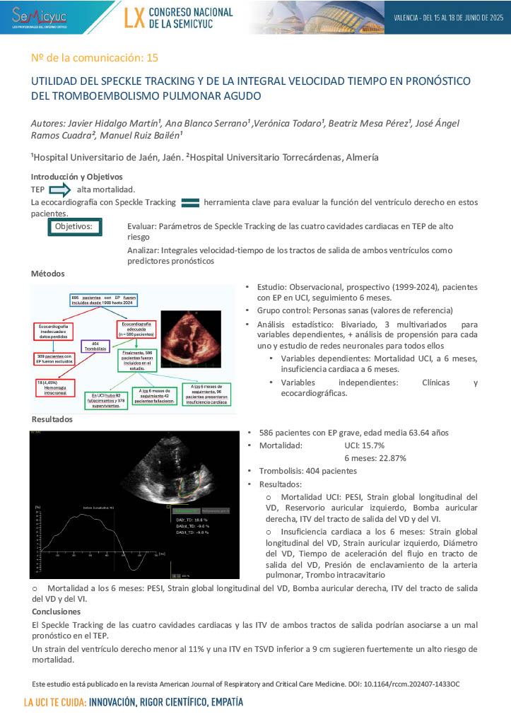 015. Utilidad del Speckle Tracking y de la integral velocidad tiempo en el pronóstico del tromboembolismo pulmonar agudo