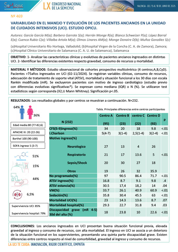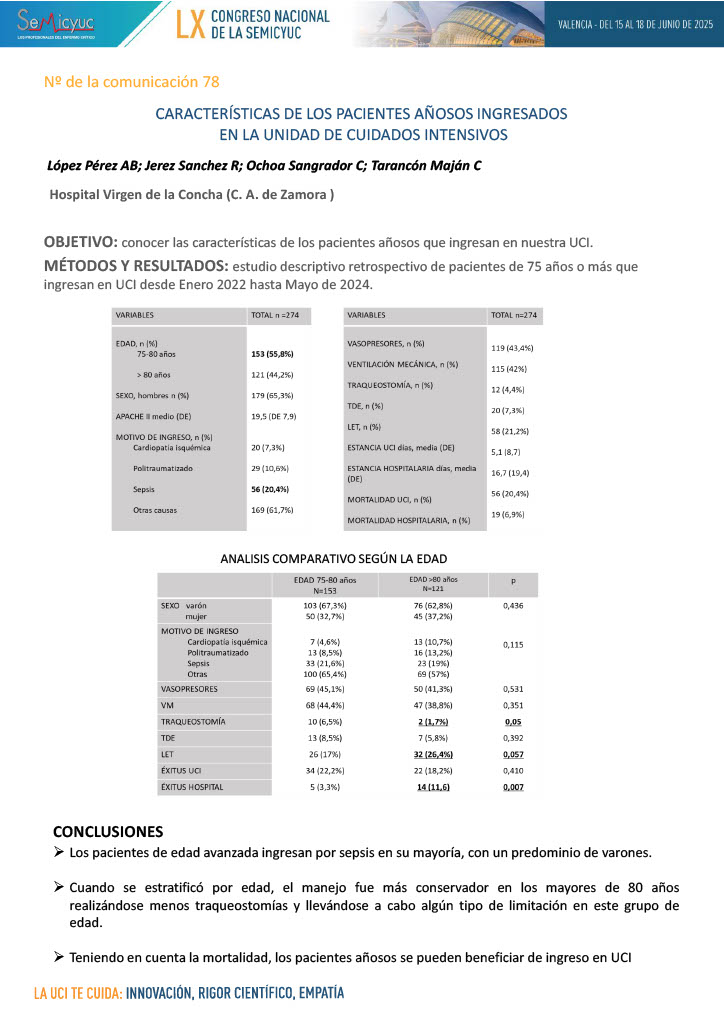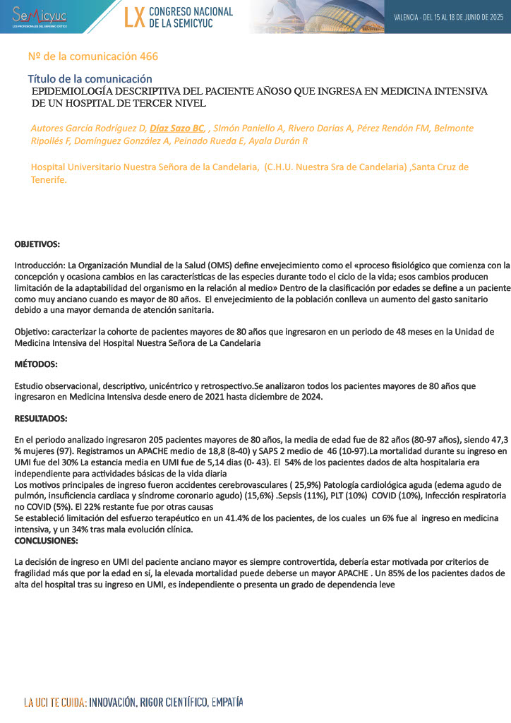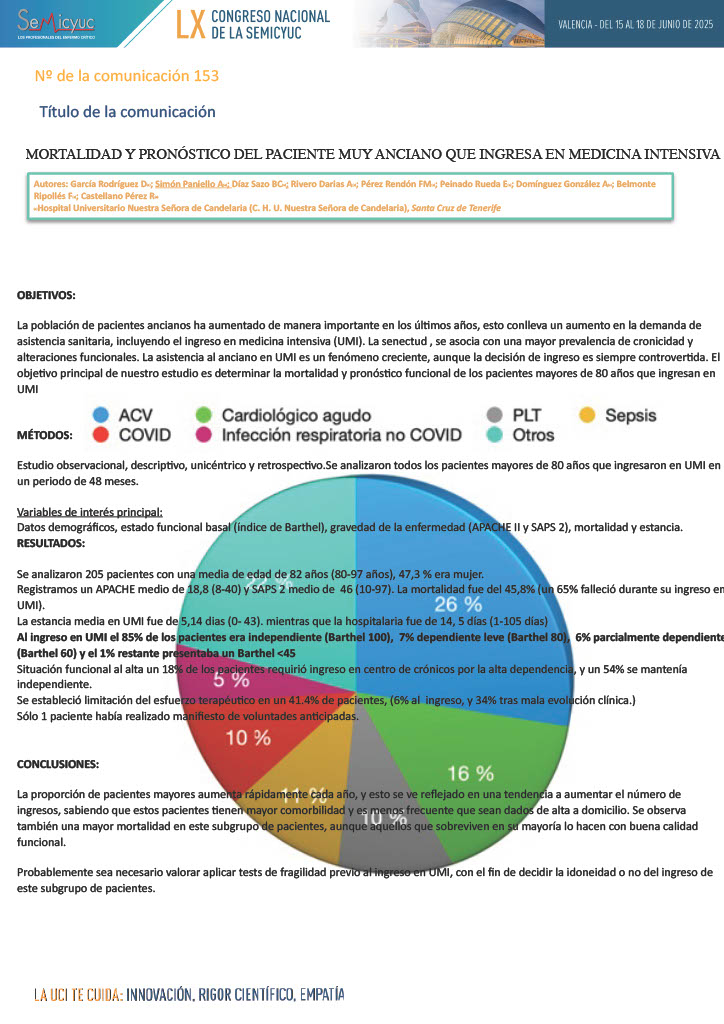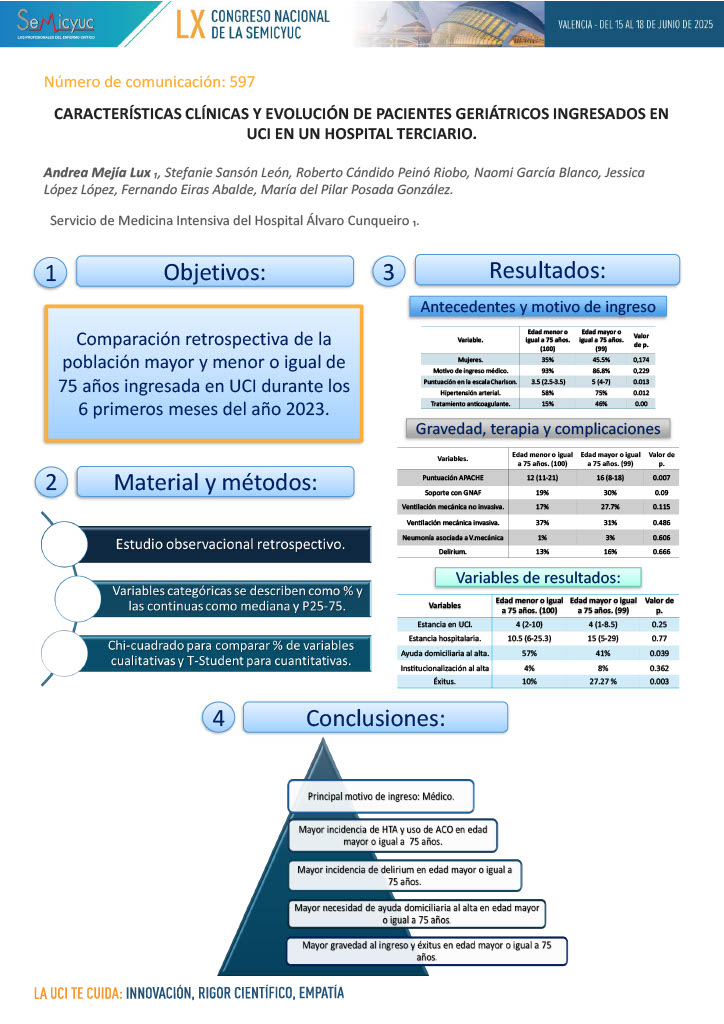 597. Características clínicas y evolución de pacientes geriátricos ingresados en UCI en un hospital terciario