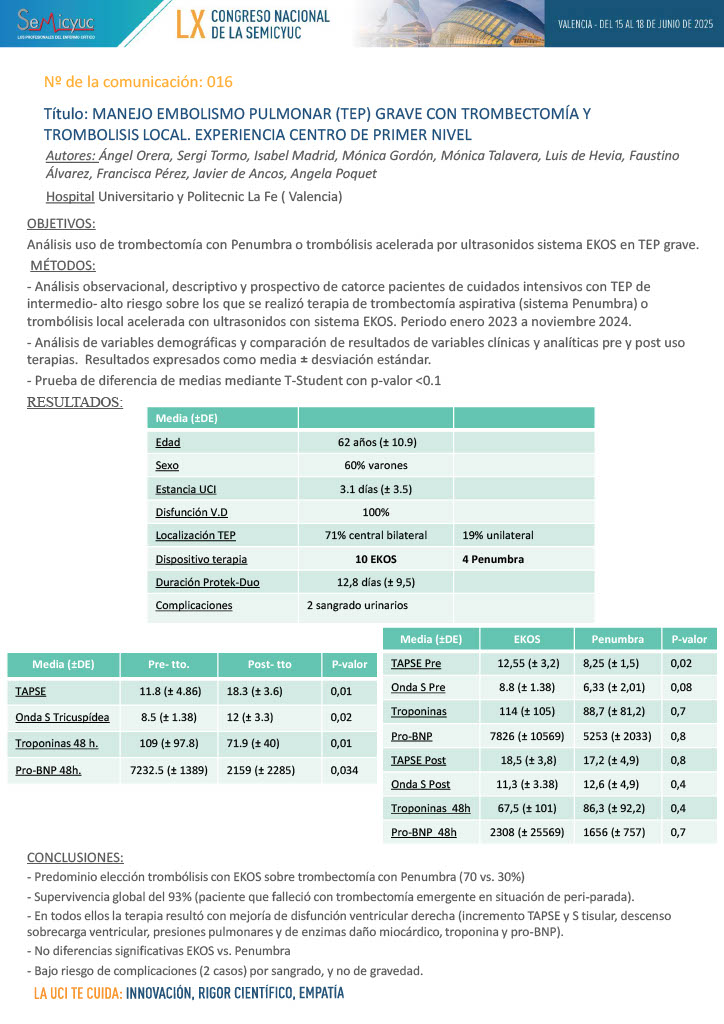 016. Manejo embolismo pulmonar (TEP) grave con trombectomía y trombólisis local. Experiencia centro de primer nivel