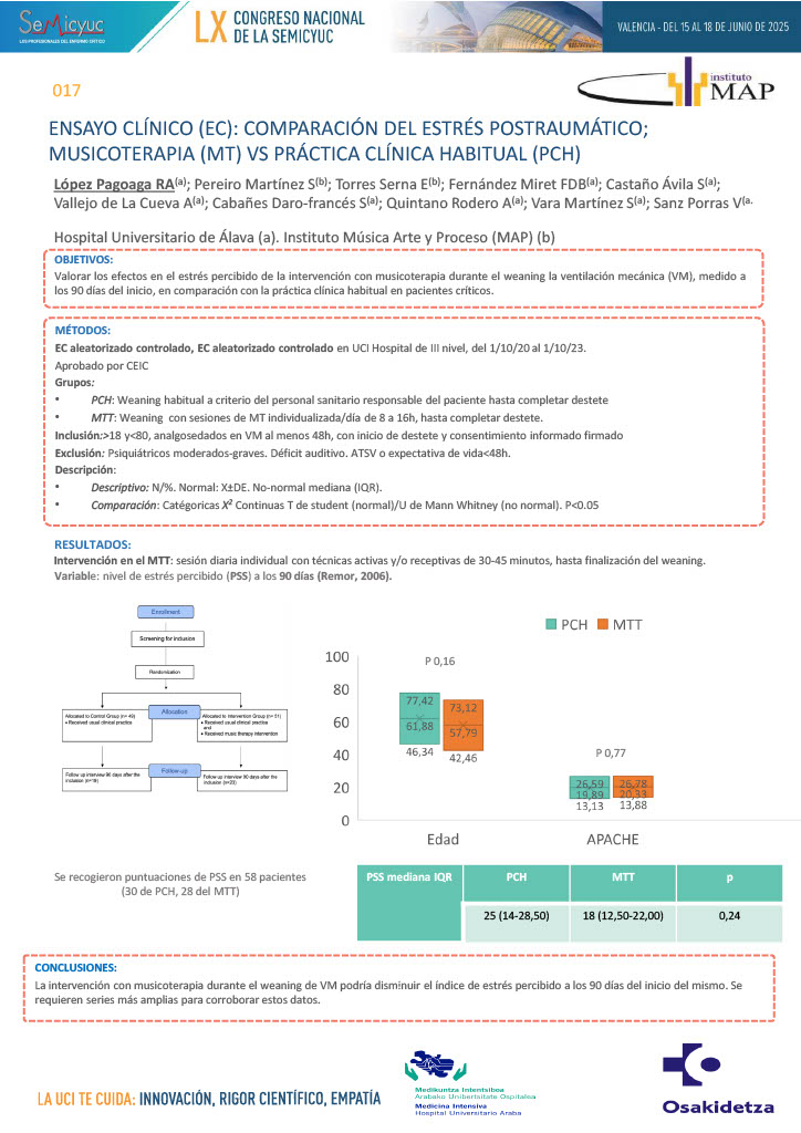 017. Ensayo clínico (EC): comparación del estrés postraumático; musicoterapia (MT) vs. práctica clínica habitual (PCH)
