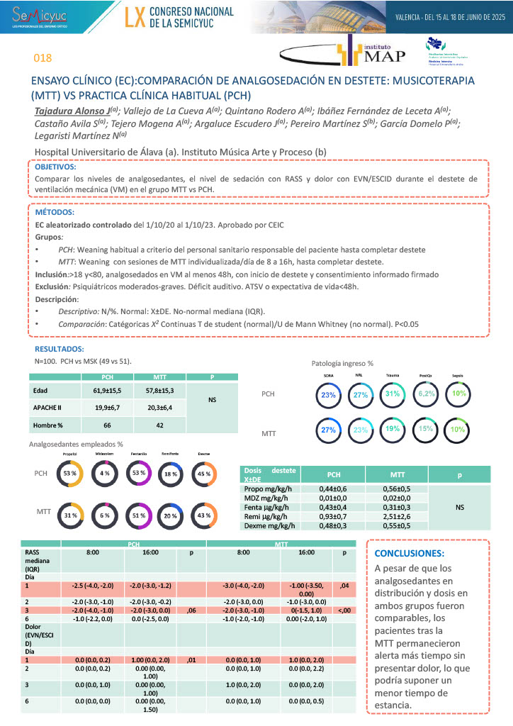 018. Ensayo clínico (EC): comparación de analgosedación en destete: musicoterapia (MT) vs. práctica clínica habitual (PCH)