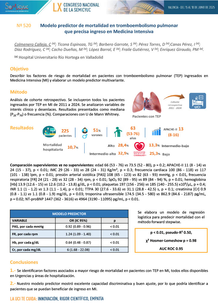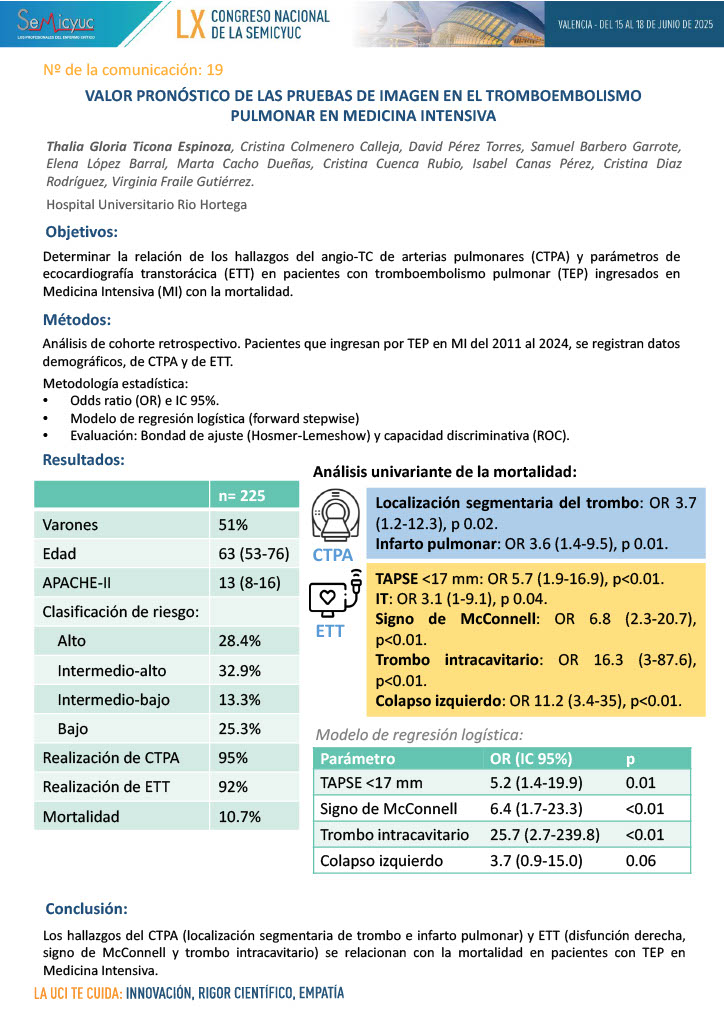 019. Valor pronóstico de las pruebas de imagen en el tromboembolismo pulmonar en medicina intensiva