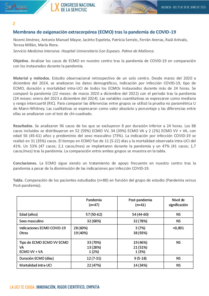 002. Membrana de oxigenación extracorpórea (ECMO) tras la Pandemia de COVID-19