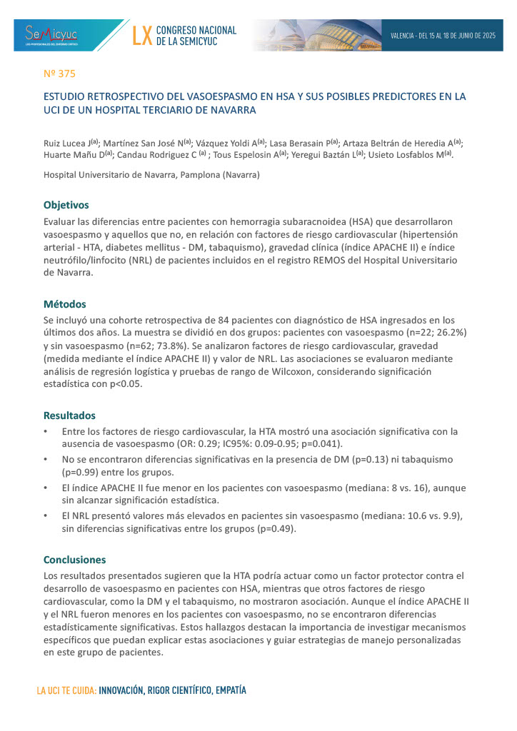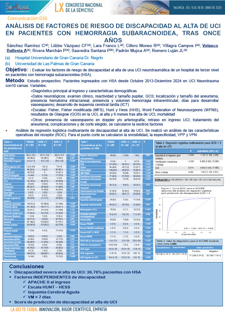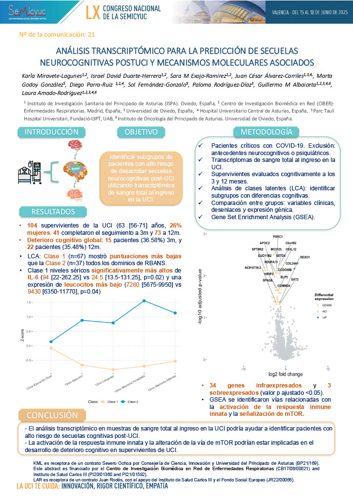 021. Análisis transcriptómico para la predicción de secuelas neurocognitivas post UCI y mecanismos moleculares asociados