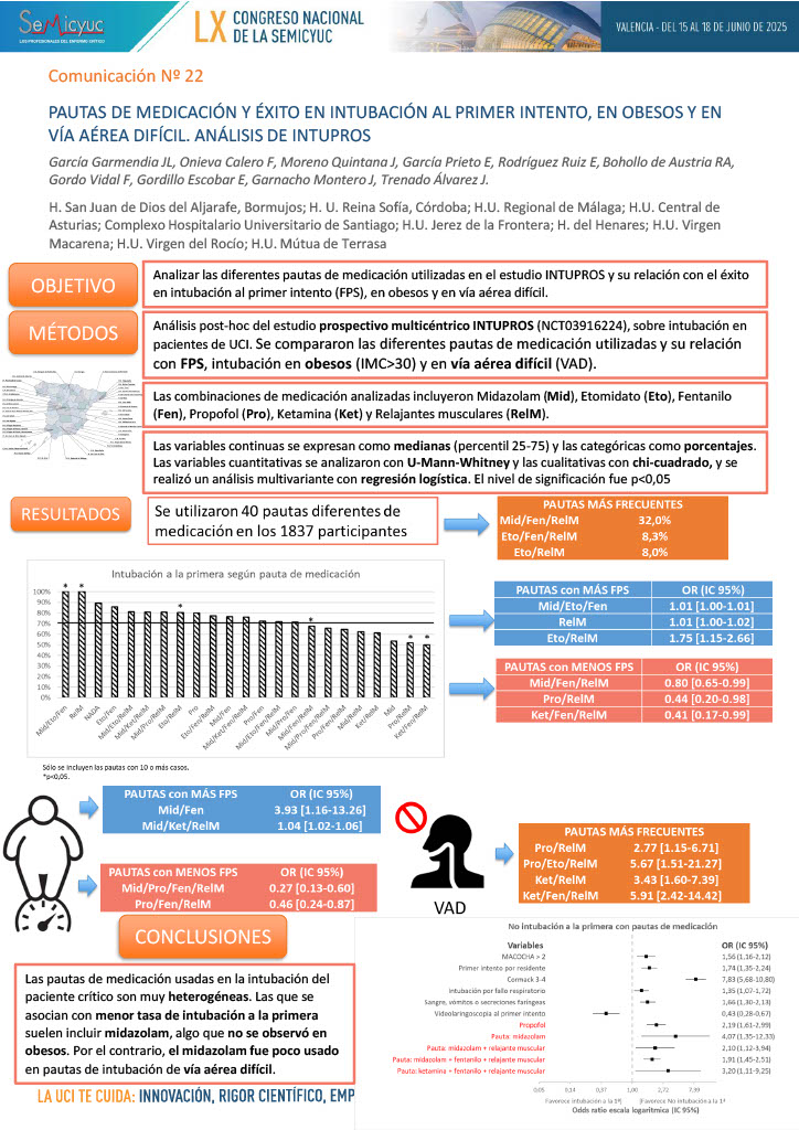 022. Pautas de medicación y éxito en intubación al primer intento, en obesos y en vía aérea difícil. Análisis de INTUPROS