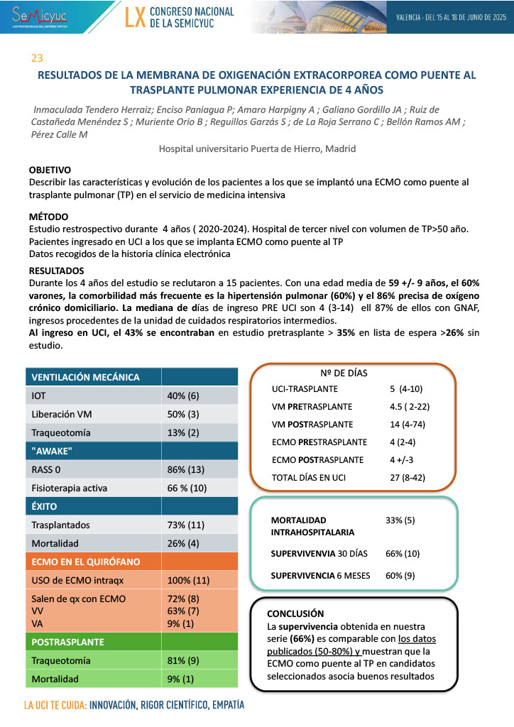 023. Resultados de la membrana de oxigenación extracorpórea como puente al trasplante pulmonar. Experiencia de 4 años