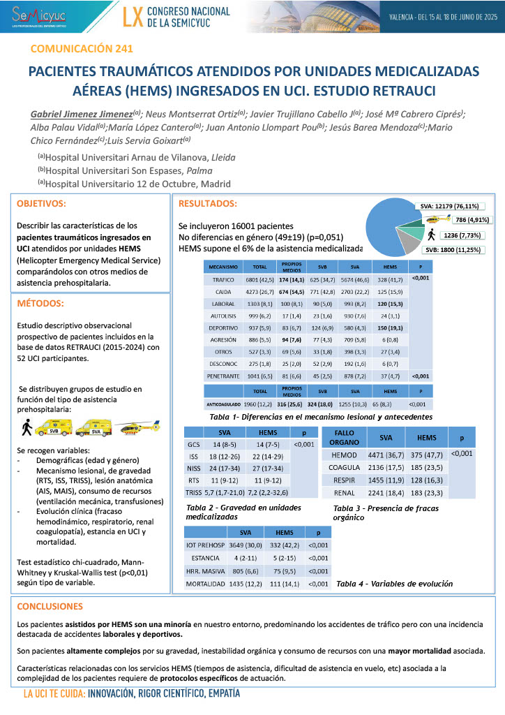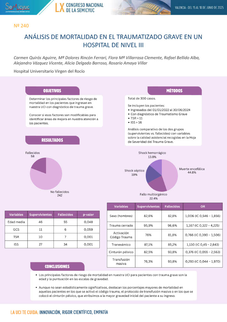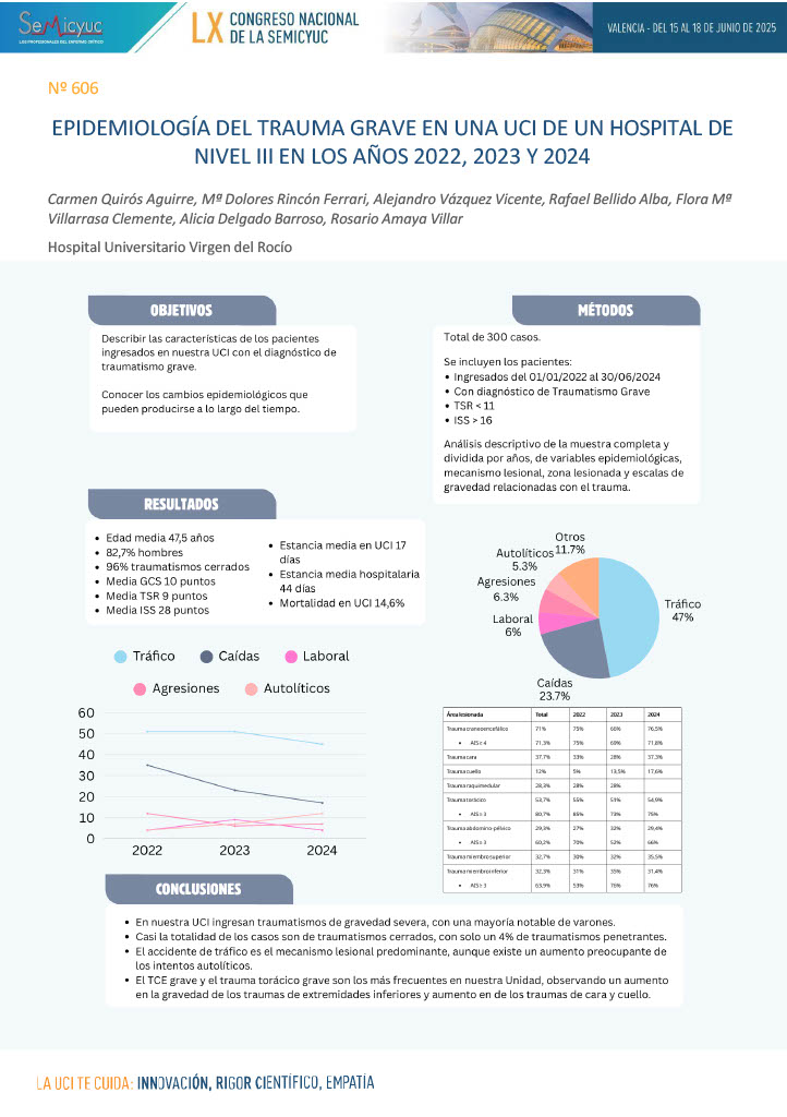 606. Epidemiología del trauma grave en una UCI de un hospital de nivel III en los años 2022, 2023 y 2024