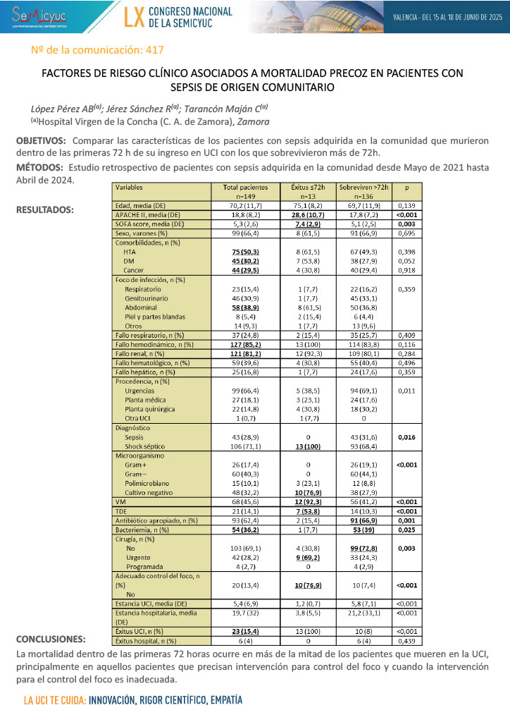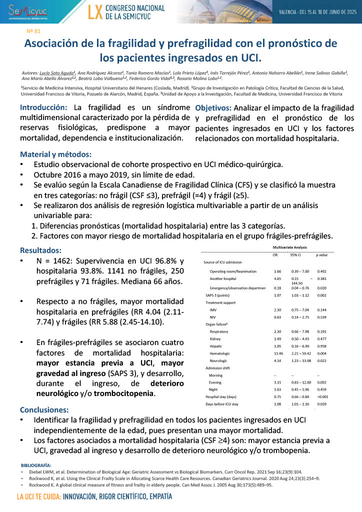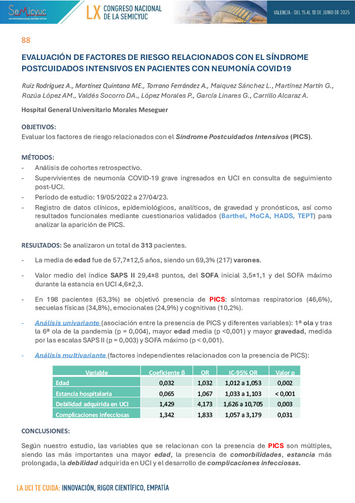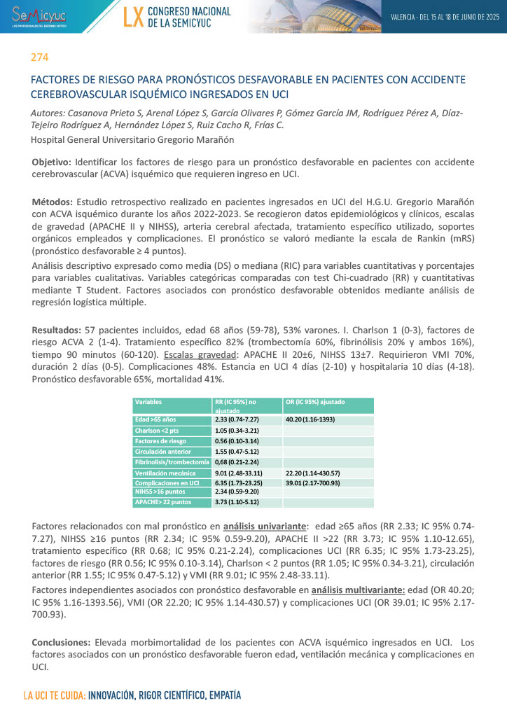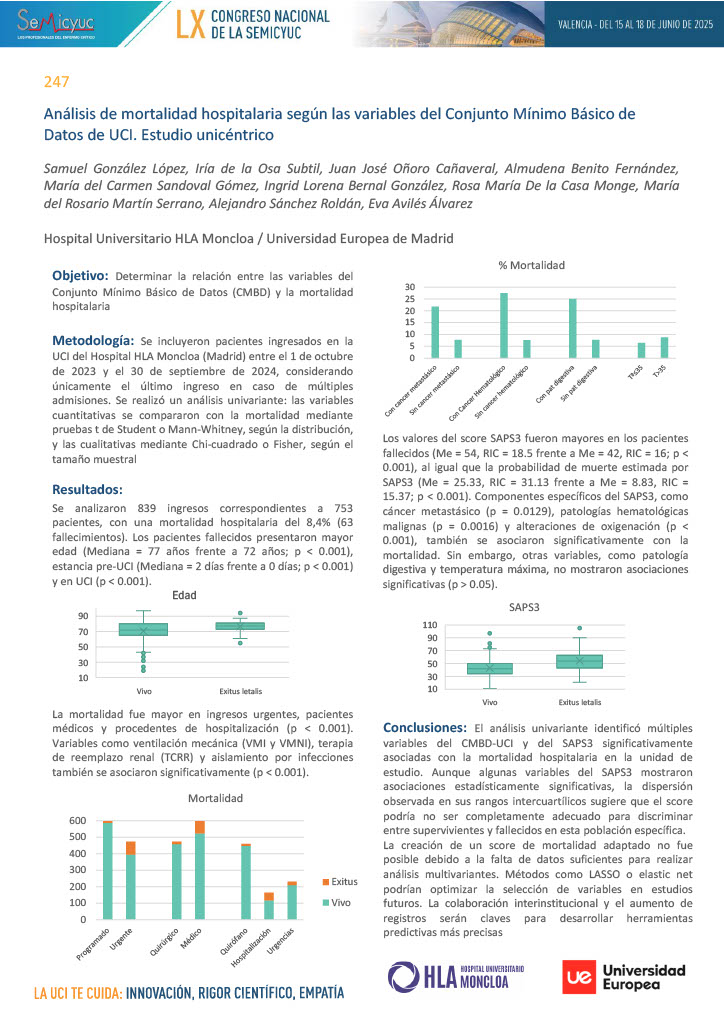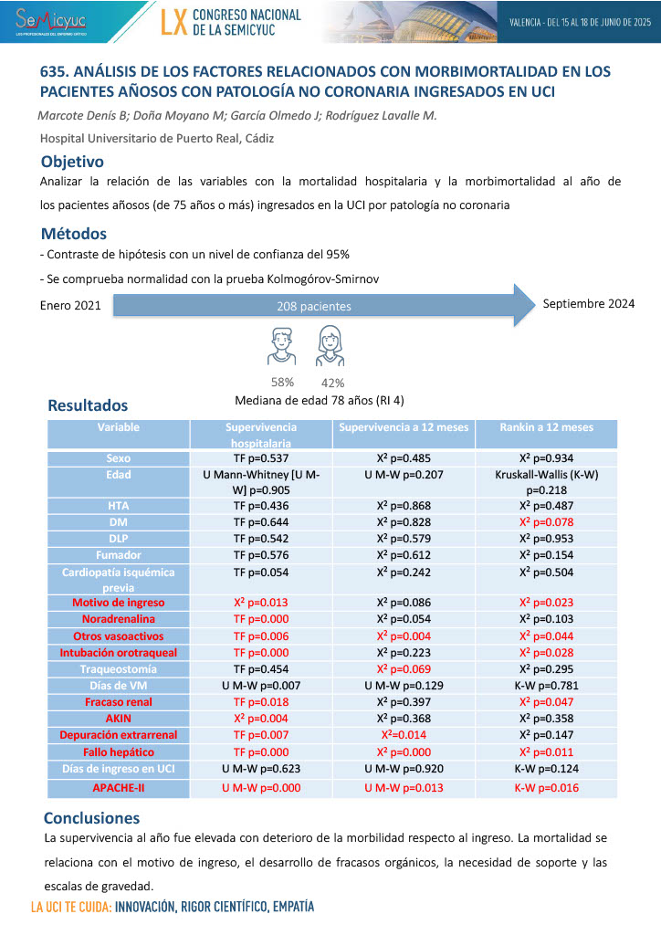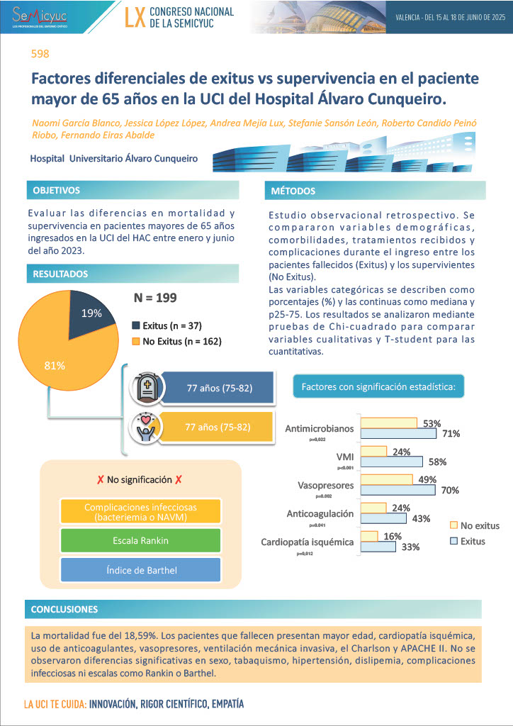598. Factores diferenciales de exitus vs. supervivencia en paciente mayor de 65 años en la UCI del Hospital Álvaro Cunqueiro