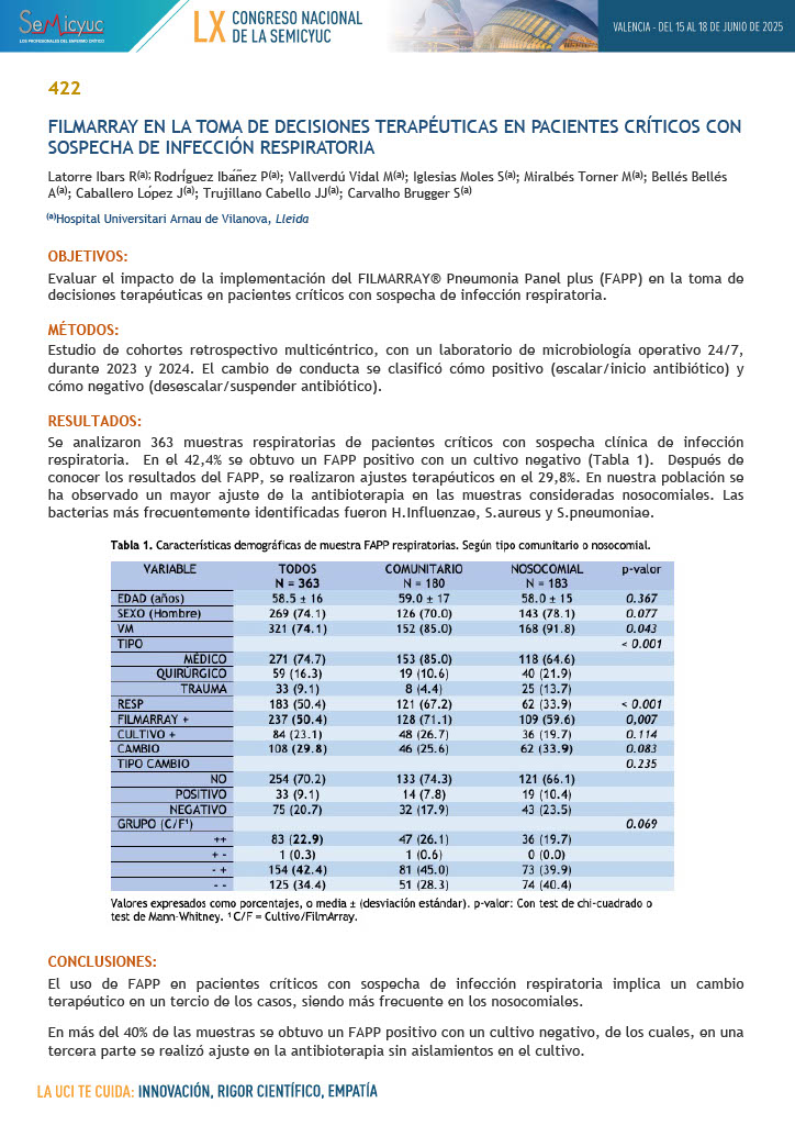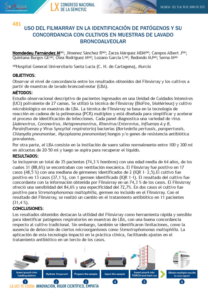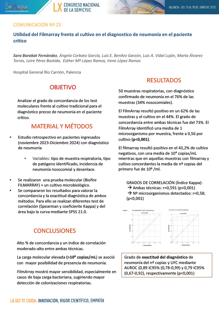 025. Utilidad del FILMARRAY frente al cultivo en el diagnóstico de neumonía en el paciente crítico