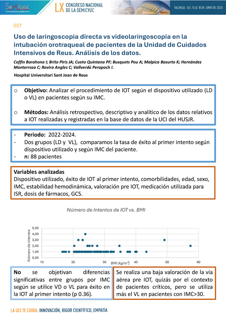 027. Uso de laringoscopia directa VRS videolaringoscopia en IOT de pacientes de la UCI en Reus, análisis de datos 2021-2024