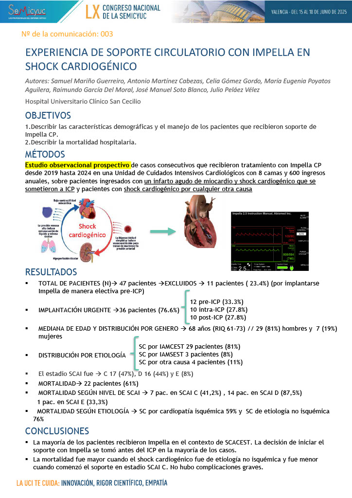 003. Experiencia de soporte circulatoria con IMPELLA en shock cardiogénico