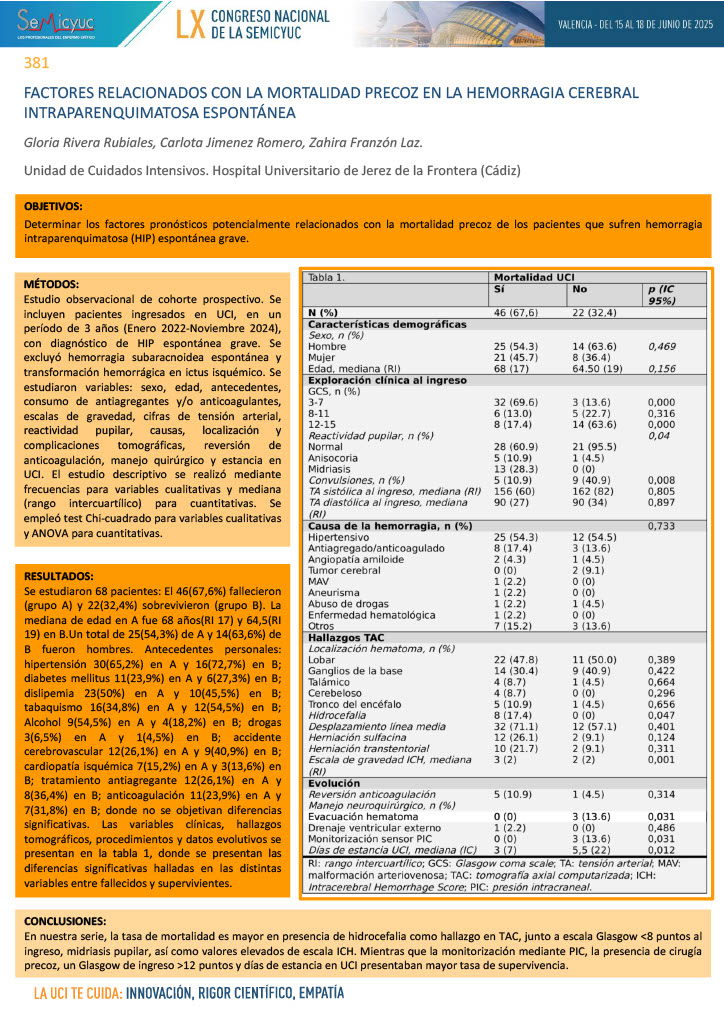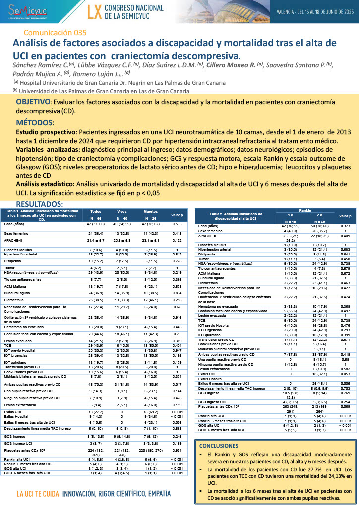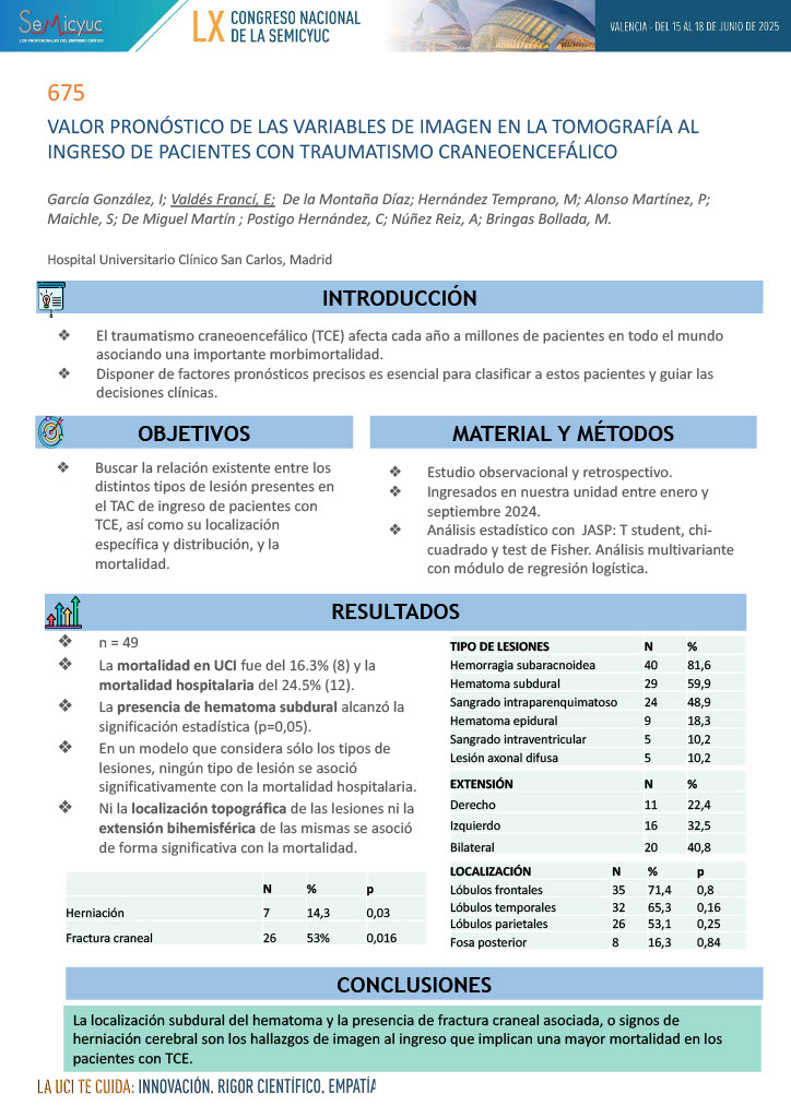 675. Valor pronóstico de las variables de imagen en la tomografía al ingreso de pacientes con traumatismo craneoencefálico