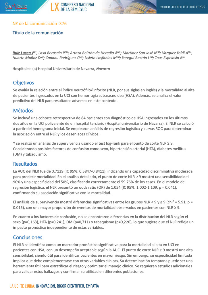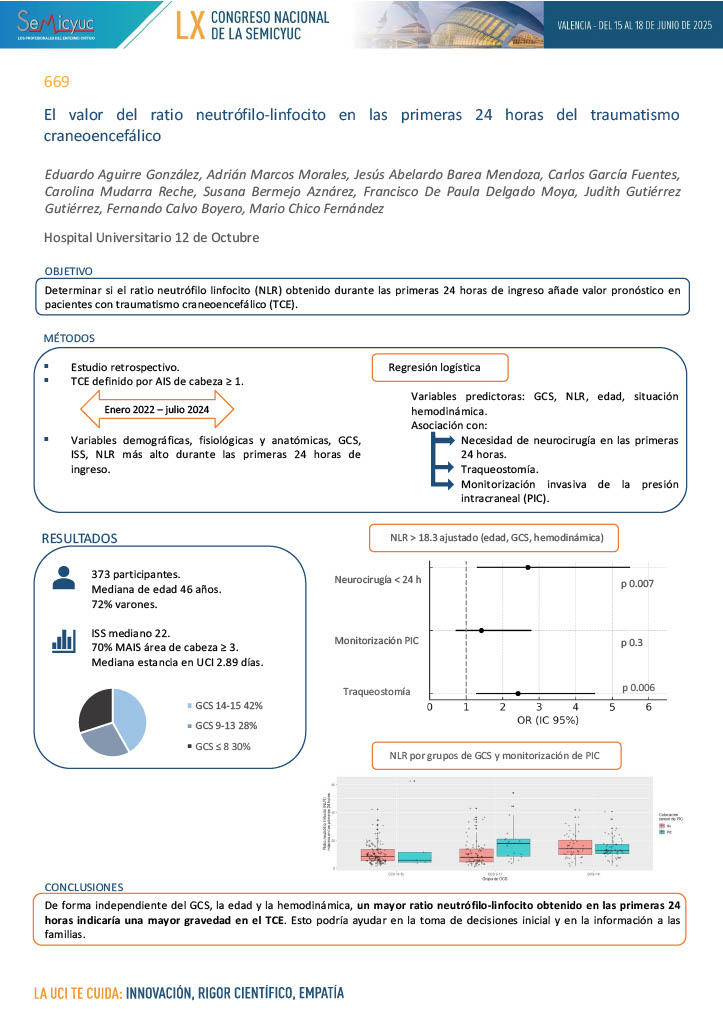 669. El valor del ratio neutrófilo-linfocito en las primeras 24 horas del traumatismo craneoencefálico