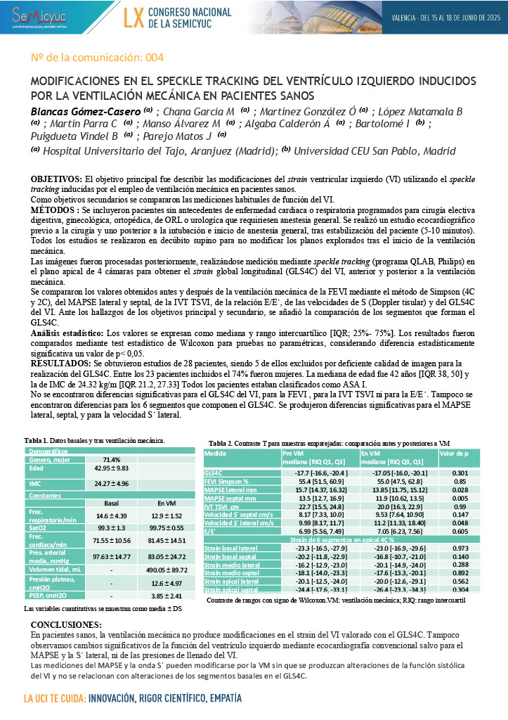 004. Modificaciones en el Speckle Tracking del ventrículo izquierdo inducidos por la ventilación mecánica en pacientes sanos
