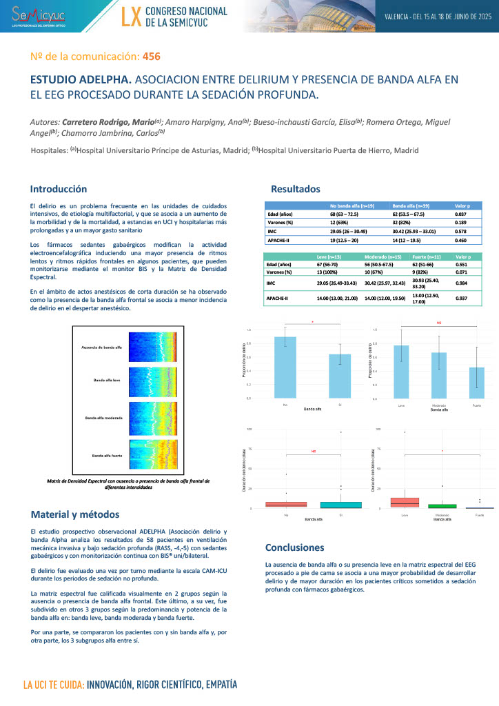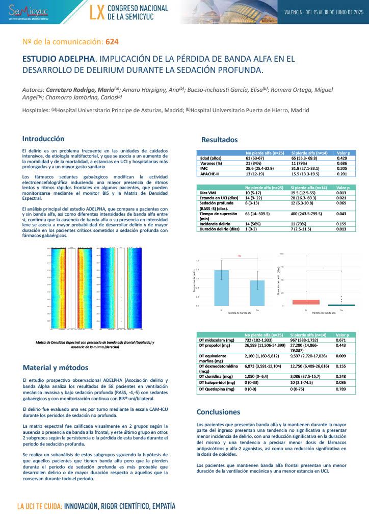 624. Estudio ADELPHA. Implicación de la pérdida de banda alfa en el desarrollo de delirium durante la sedación profunda