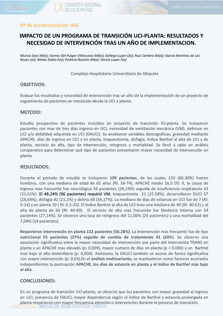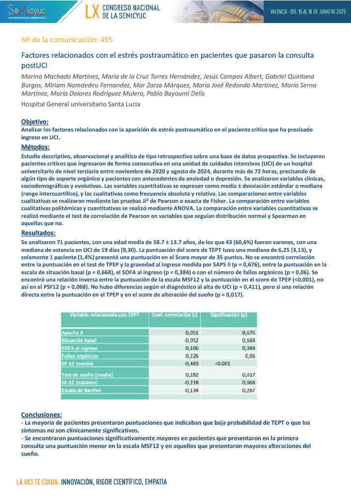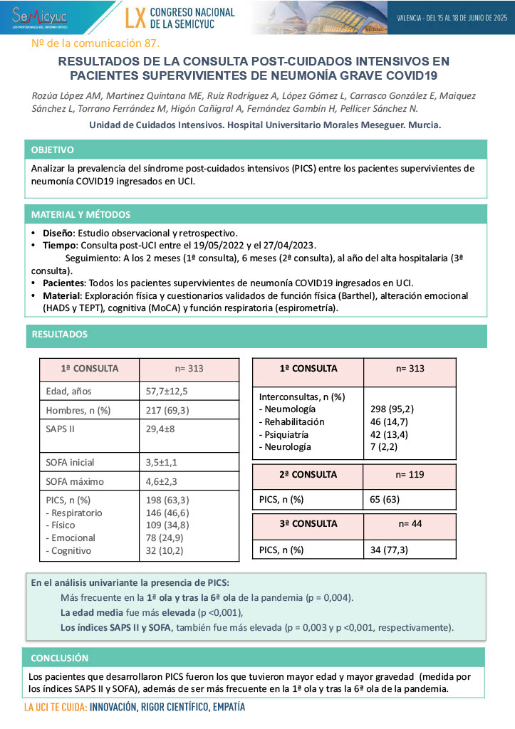 592. Nuestros primeros datos del seguimiento post-UCI: el punto de partida para futuros estudios y optimización del servicio