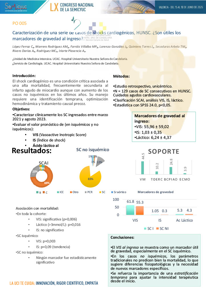 005. Caracterización de una serie de casos de Shocks Cardiogénicos, HUNSC. ¿Son útiles los marcadores de gravedad al ingreso?