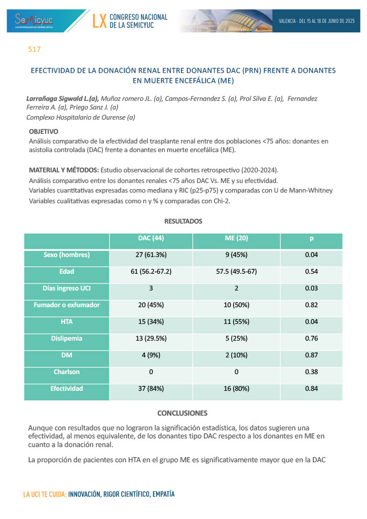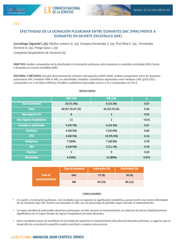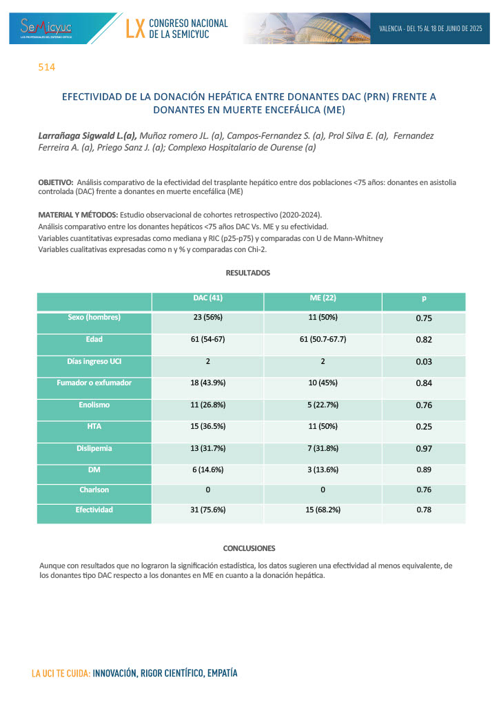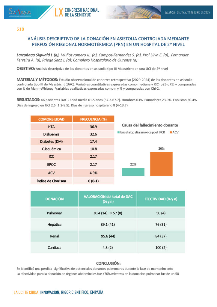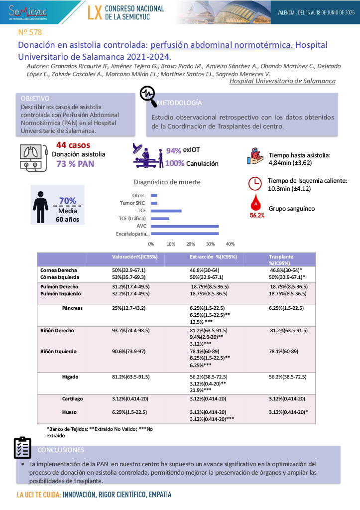 578. Donación en asistolia controlada, perfusión abdominal normotérmica – Hospital Universitario de Salamanca 2021-2024