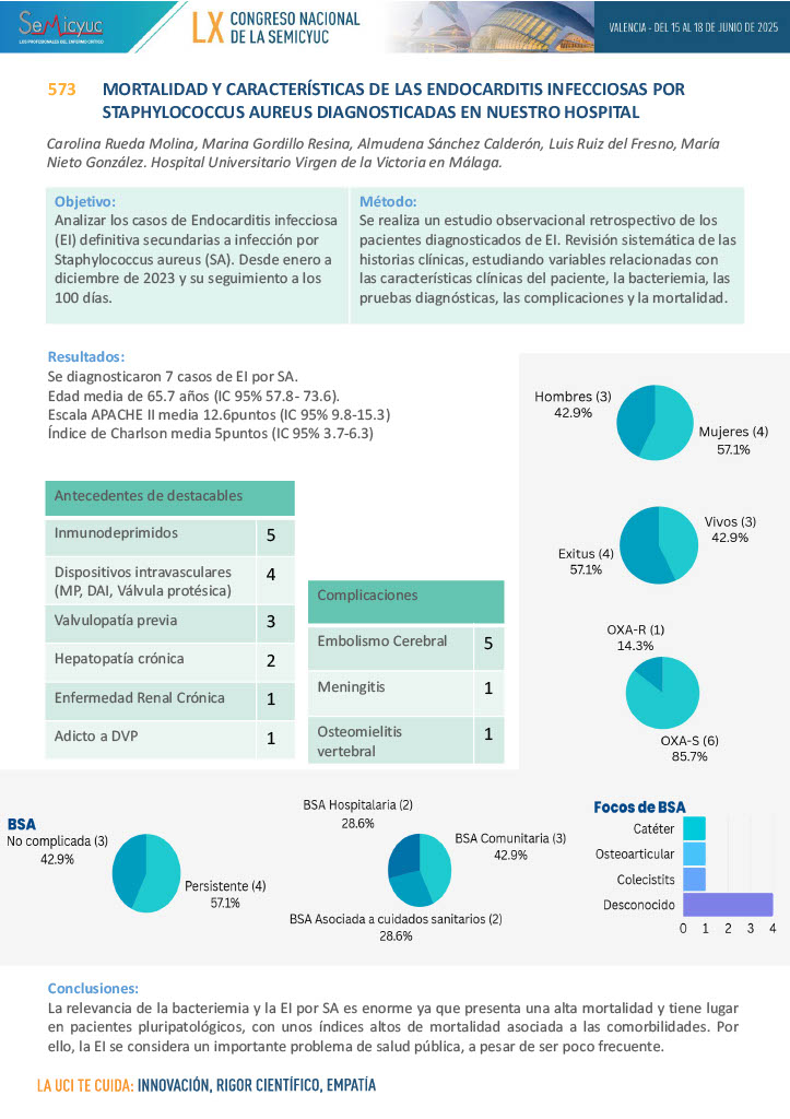 573. Mortalidad y características de endocarditis infecciosas por staphyilococcus aureus diagnosticadas en nuestro hospital