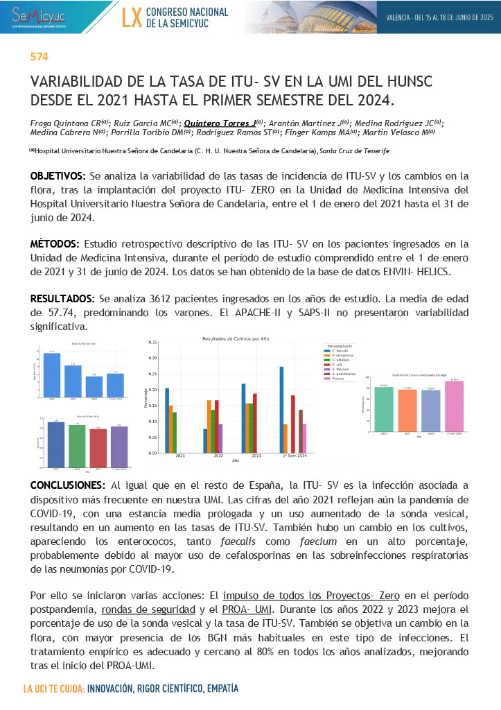 574. Variabilidad de la tasa de ITU-SV en la UMI del HUNSC desde el 2021 hasta el primer semestre del 2024