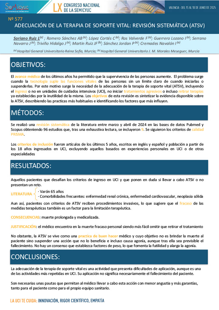 577. Adecuación de la terapia de soporte vital: revisión sistemática