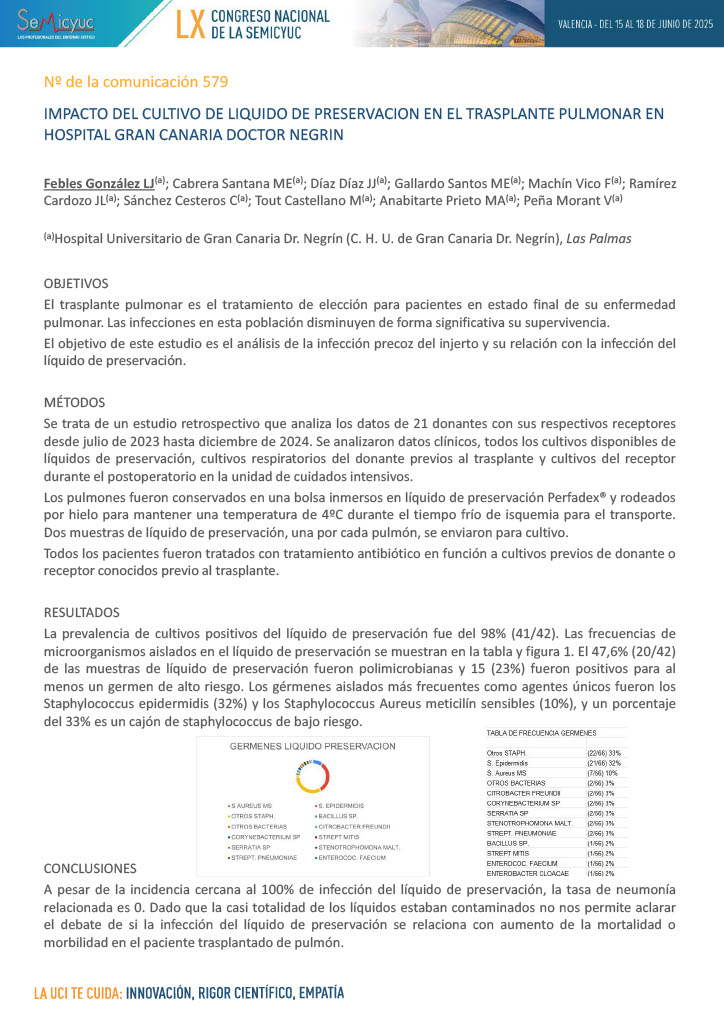 579. Impacto del cultivo de líquido de preservación en el trasplante pulmonar en Hospital Gran Canaria Doctor Negrín