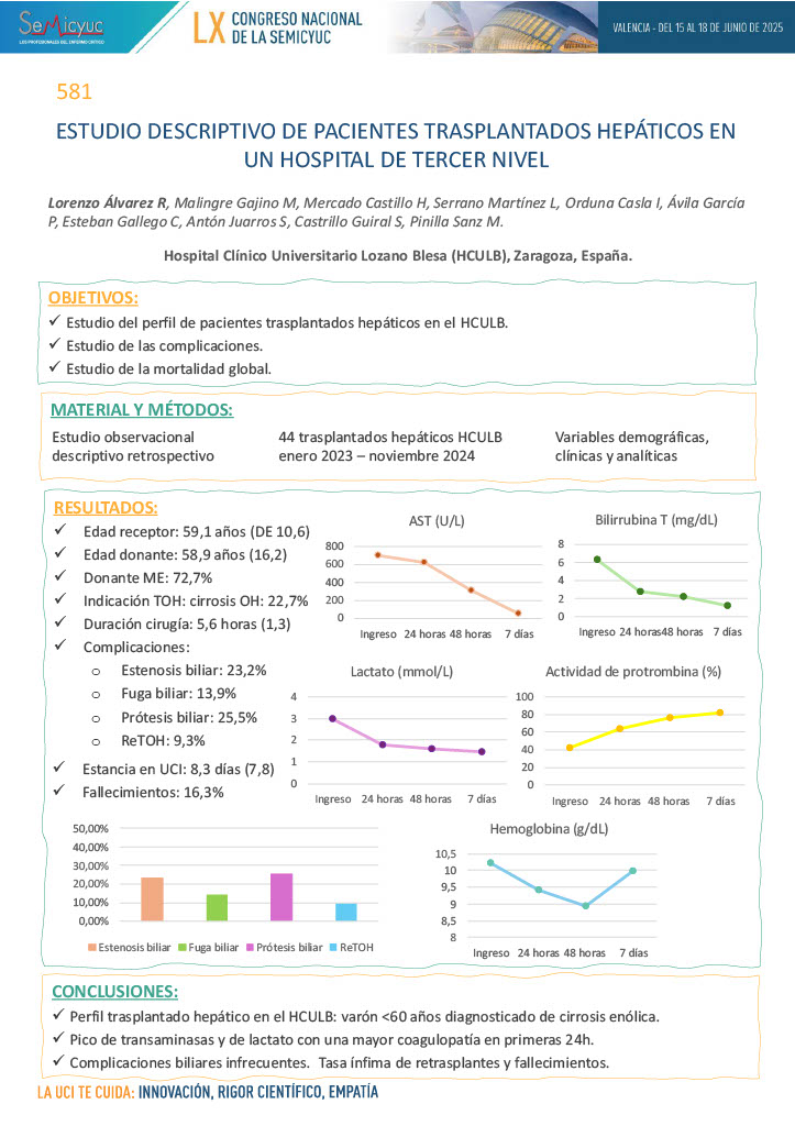 581. Estudio descriptivo de pacientes trasplantados hepáticos en un hospital de tercer nivel
