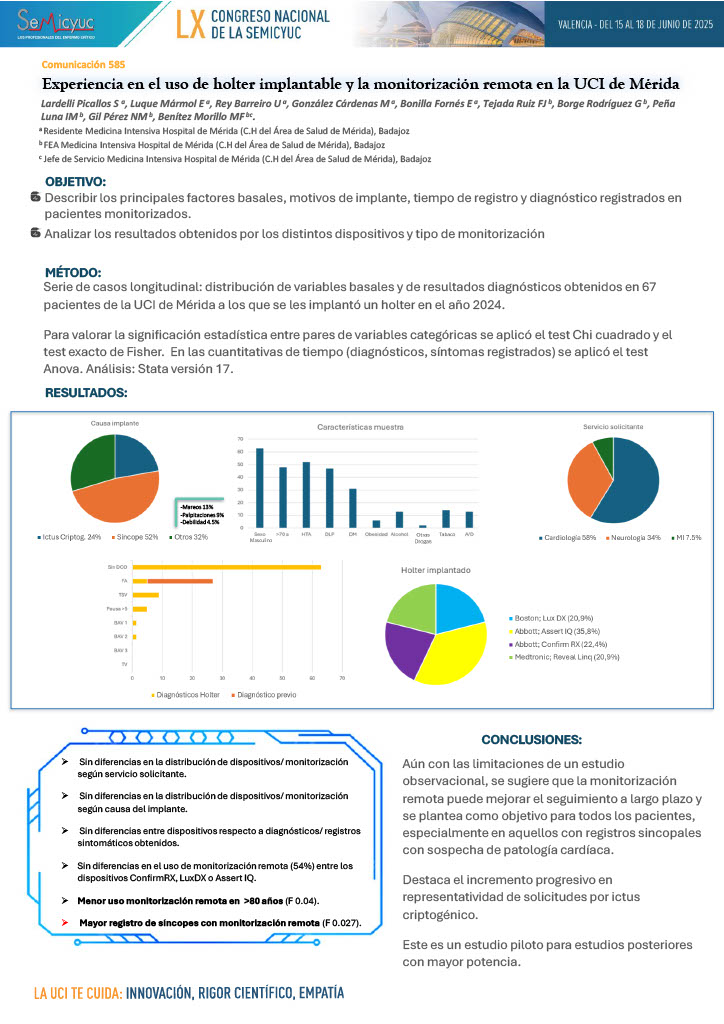 585. Experiencia en el uso del holter implantable y la monitorización remota en la UCI de Mérida
