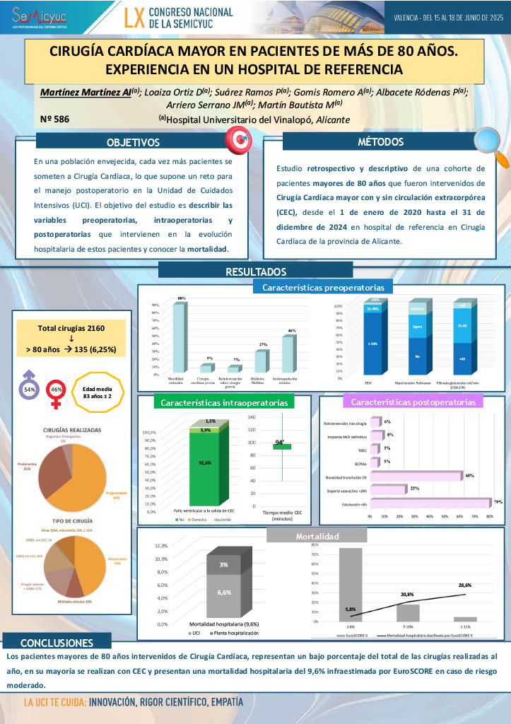 586. Cirugía cardíaca mayor en pacientes mayores de 80 años. Experiencia en un hospital de referencia