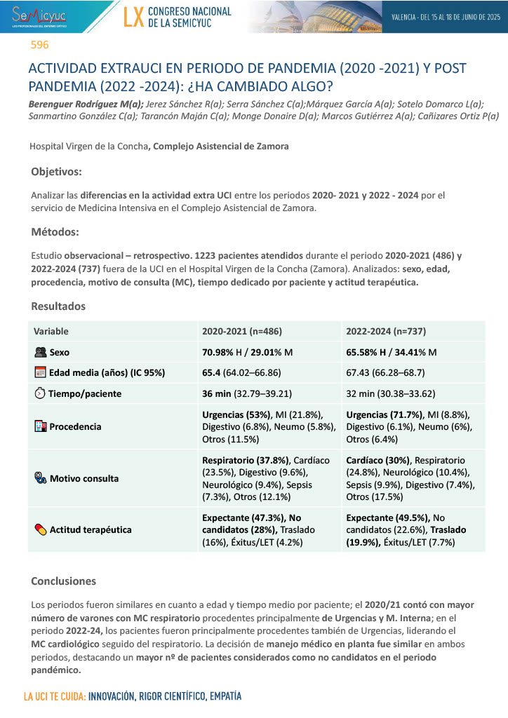 596. Actividad extraUCI en período de pandemia (2020-2021) y post pandemia (2022-2024): ¿Ha cambiado algo?