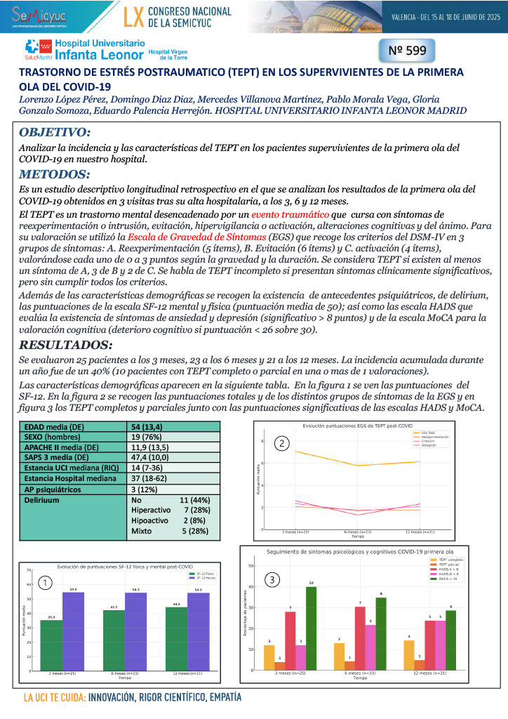 599. Trastorno de estrés postraumático (TEOT) en supervivientes de la primera ola del COVID-19