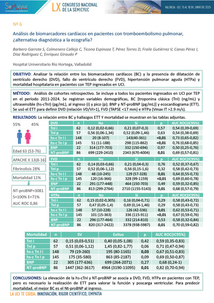 006. Análisis de biomarcadores cardíacos en pacientes con Tromboembolismo Pulmonar, ¿alternativa diagnóstica a la ecografía?
