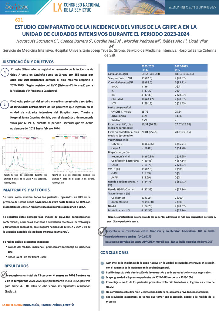 601. Estudio comparativo de la incidencia del virus de la gripe A en la unidad de cuidados intensivos durante el período 2023
