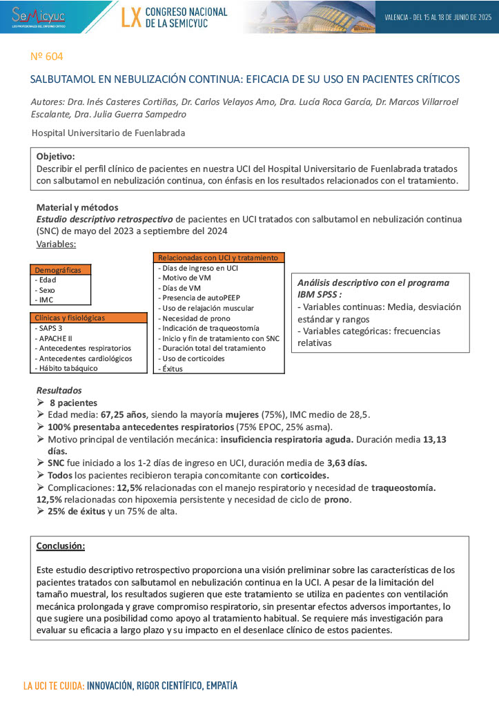 604. Salbutamol en nebulización contínua: eficacia de su uso en pacientes críticos