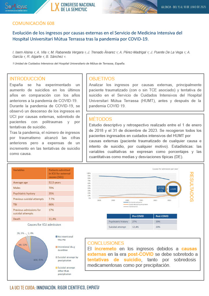 608. Evolución de los ingresos por tentativa de suicidio en la unidad de cuidados intensivos tras la pandemia de COVID-19