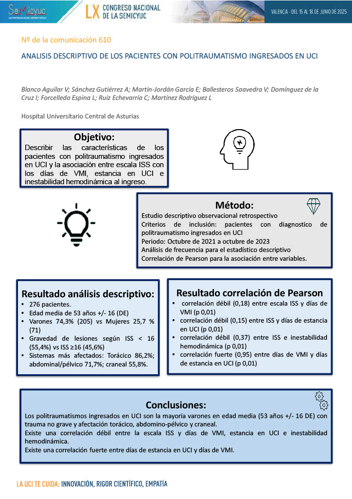 610. Análisis descriptivo de los pacientes con politraumatismo ingresados en UCI
