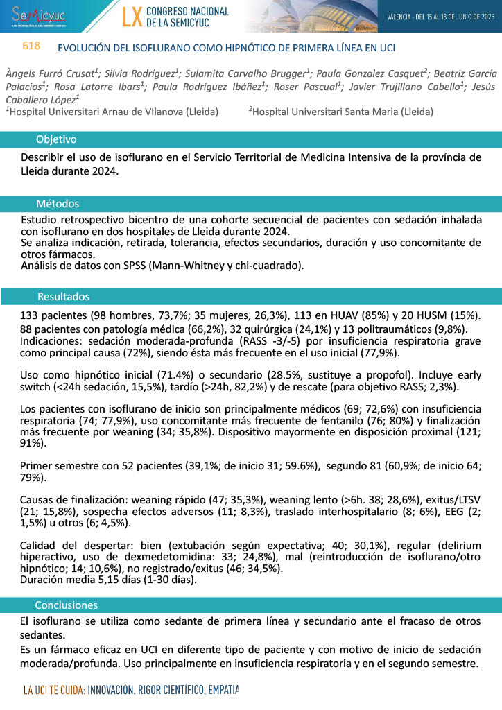 620. Uso de isoflurano como sedante de elección en una UCI polivalente de un hospital de referencia provincial