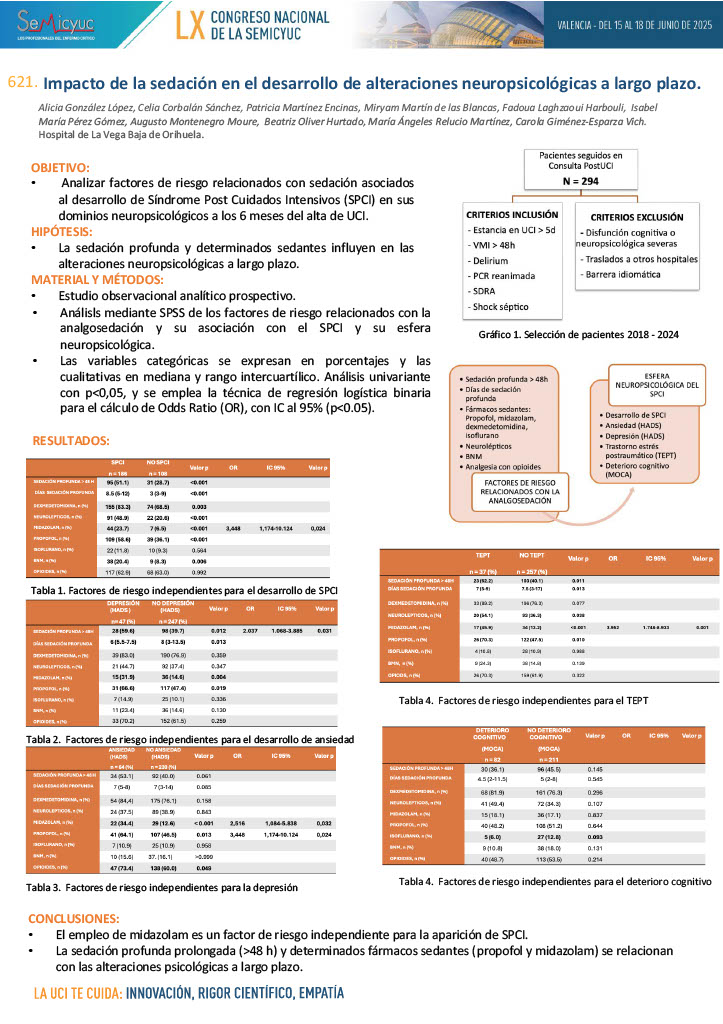 621. Impacto de la sedación en el desarrollo de alteraciones neuropsicológicas a largo plazo