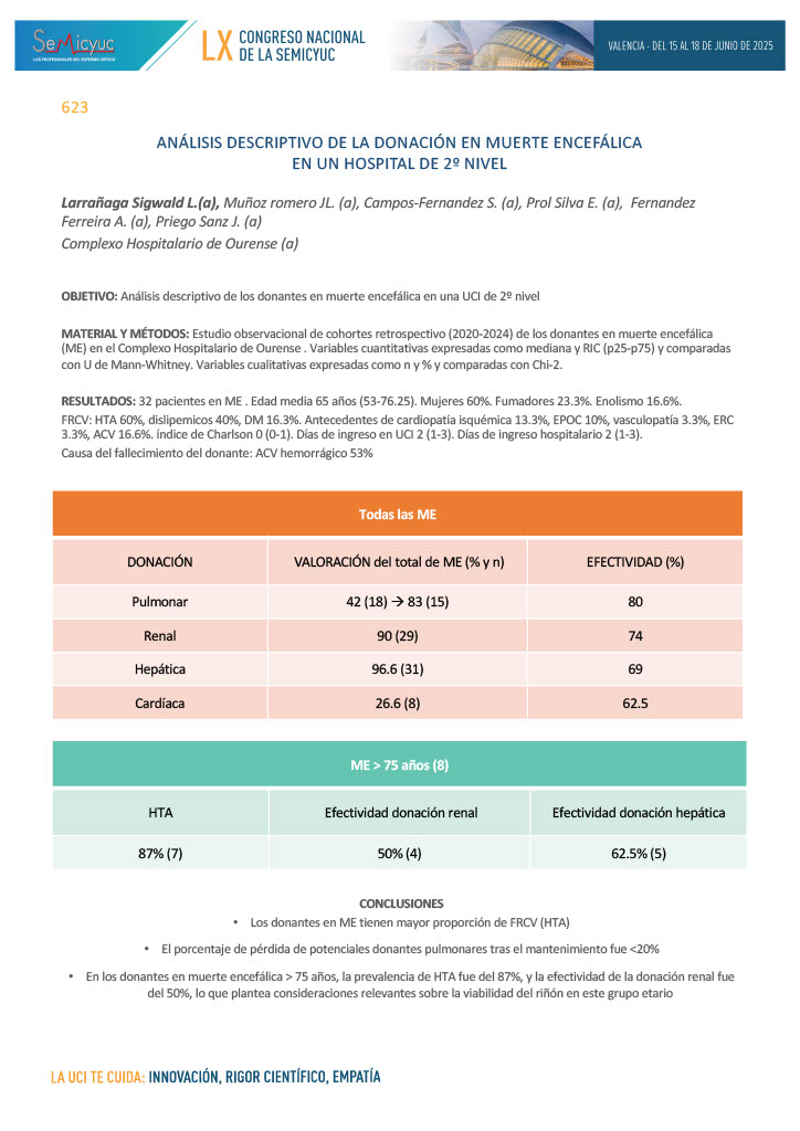 623. Análisis descriptivo de la donación en muerte encefálica en un hospital de segundo nivel