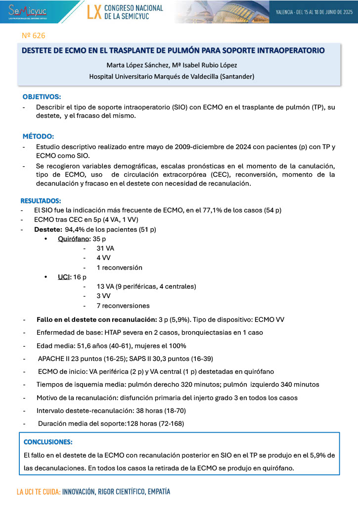 626. Destete de ECMO en el trasplante de pulmón para soporte intraoperatorio
