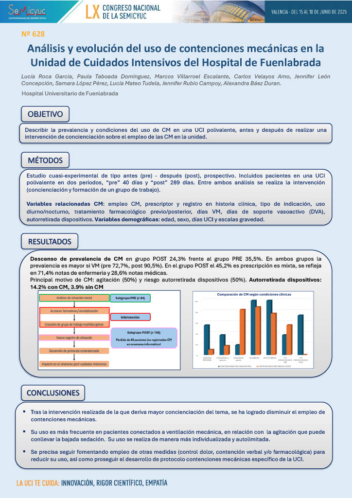 628. Análisis y evolución del uso de contenciones mecámicas en la unidad de cuidados intensivos del Hospital de Fuenlabrada