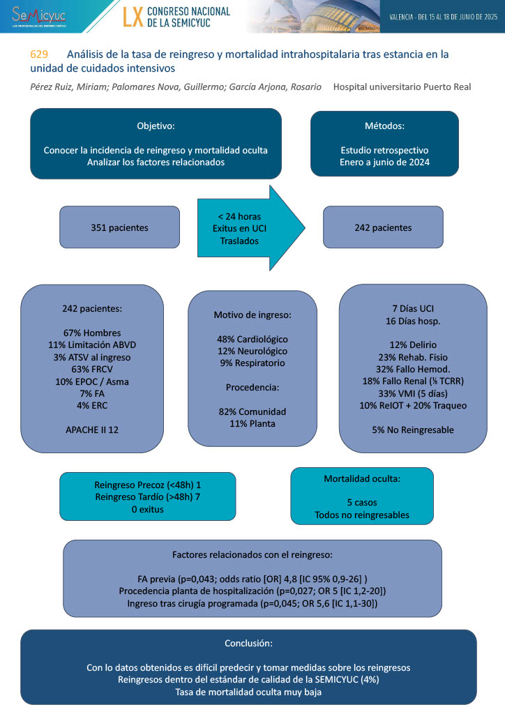 629. Análisis de la tasa de reingreso y mortalidad intrahospitalaria tras estancia en la unidad de cuidados intensivos