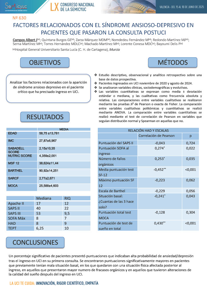 630. Factores relacionados con el síndrome ansioso-depresivo en pacientes que pasaron la consulta postUCI