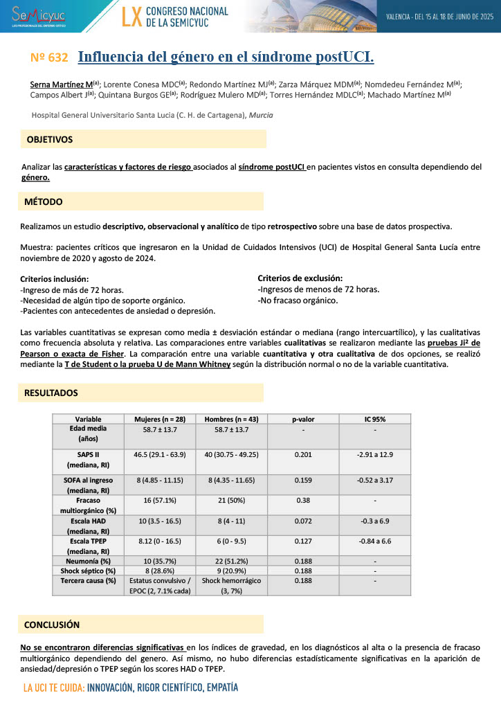 632. Influencia del género en el síndrome postUCI