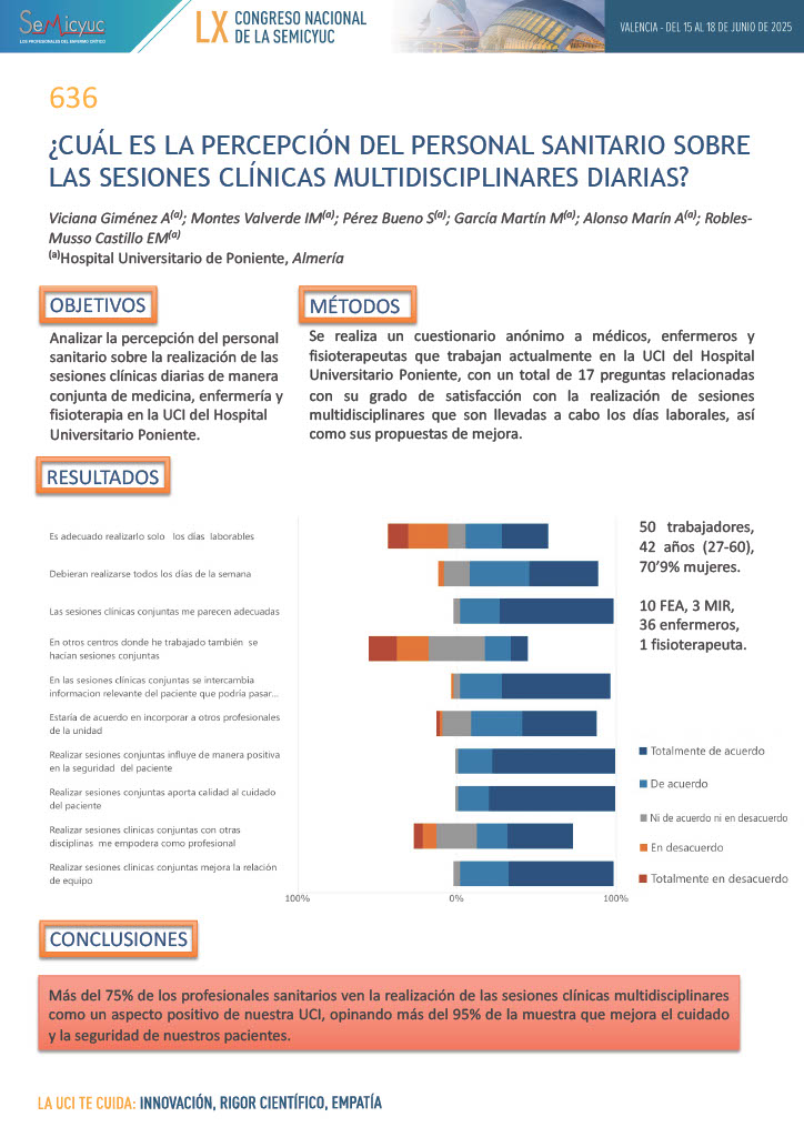 636. ¿Cuál es la percepción del personal sanitario sobre las sesiones clínicas multidisciplinares diarias?
