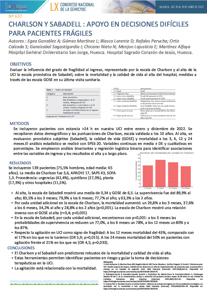 637. Charlson y Sabadell: apoyo en decisiones difíciles para pacientes frágiles